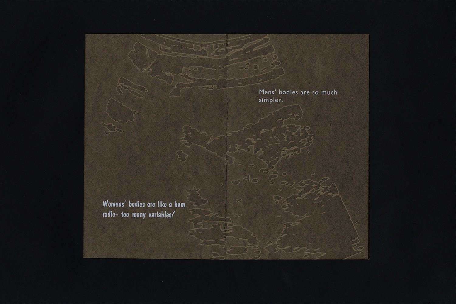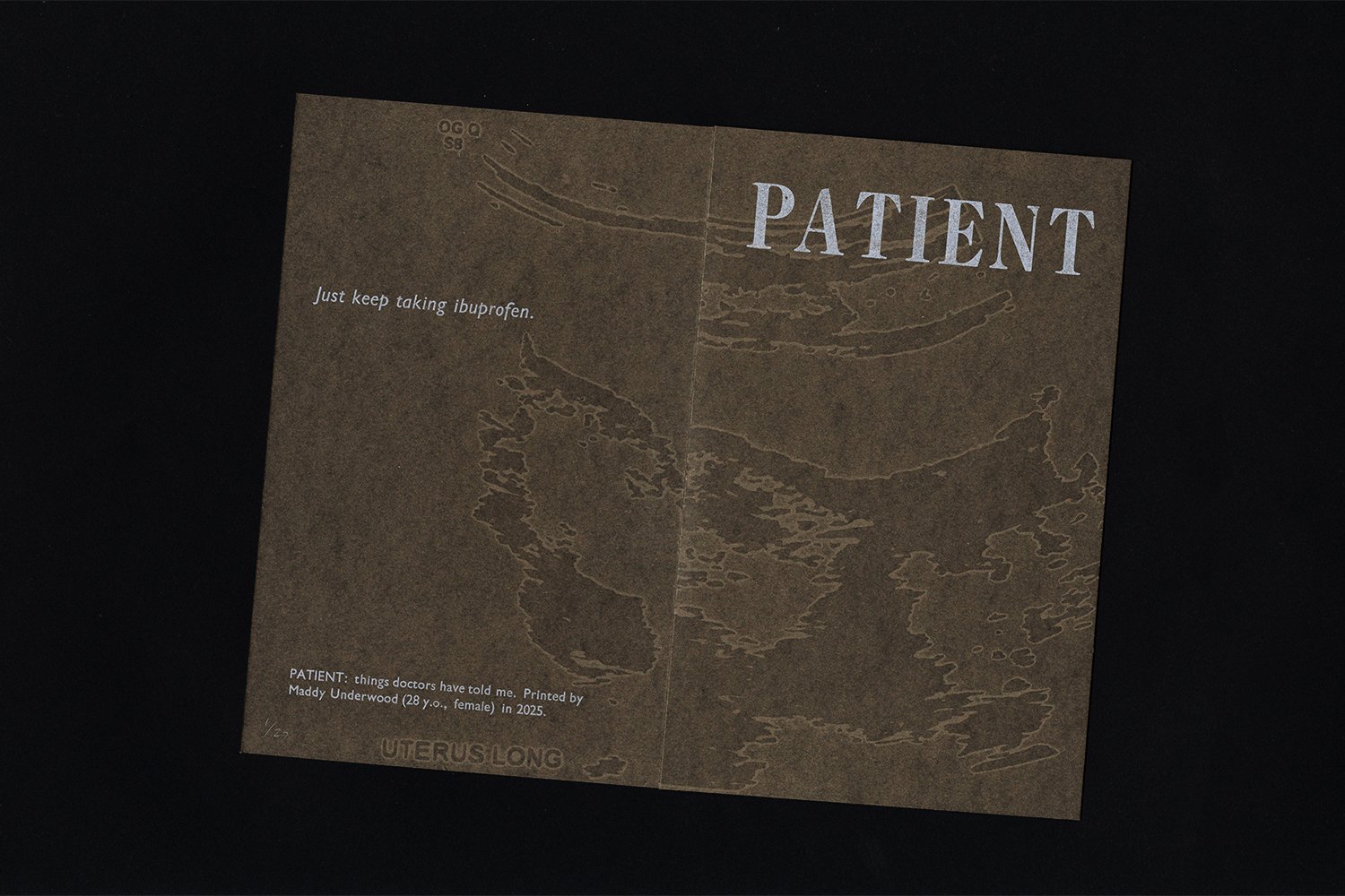 PATIENT: things doctors have said to me. One page (folded) letterpress-printed book, edition of 25. Ultrasounds printed in transparent ink on paper with handset metal type.